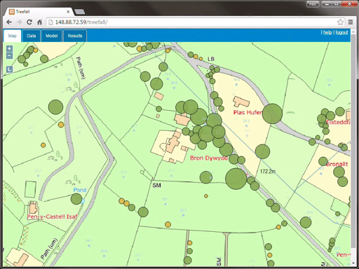 Web app running predictions of vegetation causing damages on power lines due to strong winds.